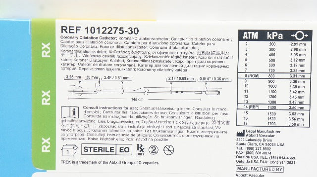 - Abbott 1012275-30 Trek Coronary Dilatation Cath. 3.25mm x 30mm x 145cm (x)
