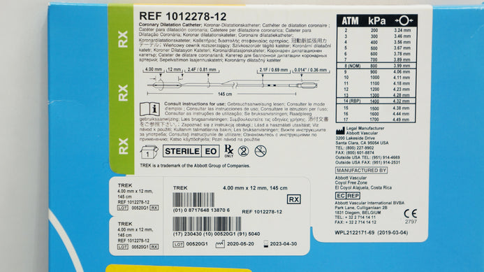 - Abbott 1012278-12 Coronary Dilatation Cath. 4.00mm x 12mm x 145cm (x)
