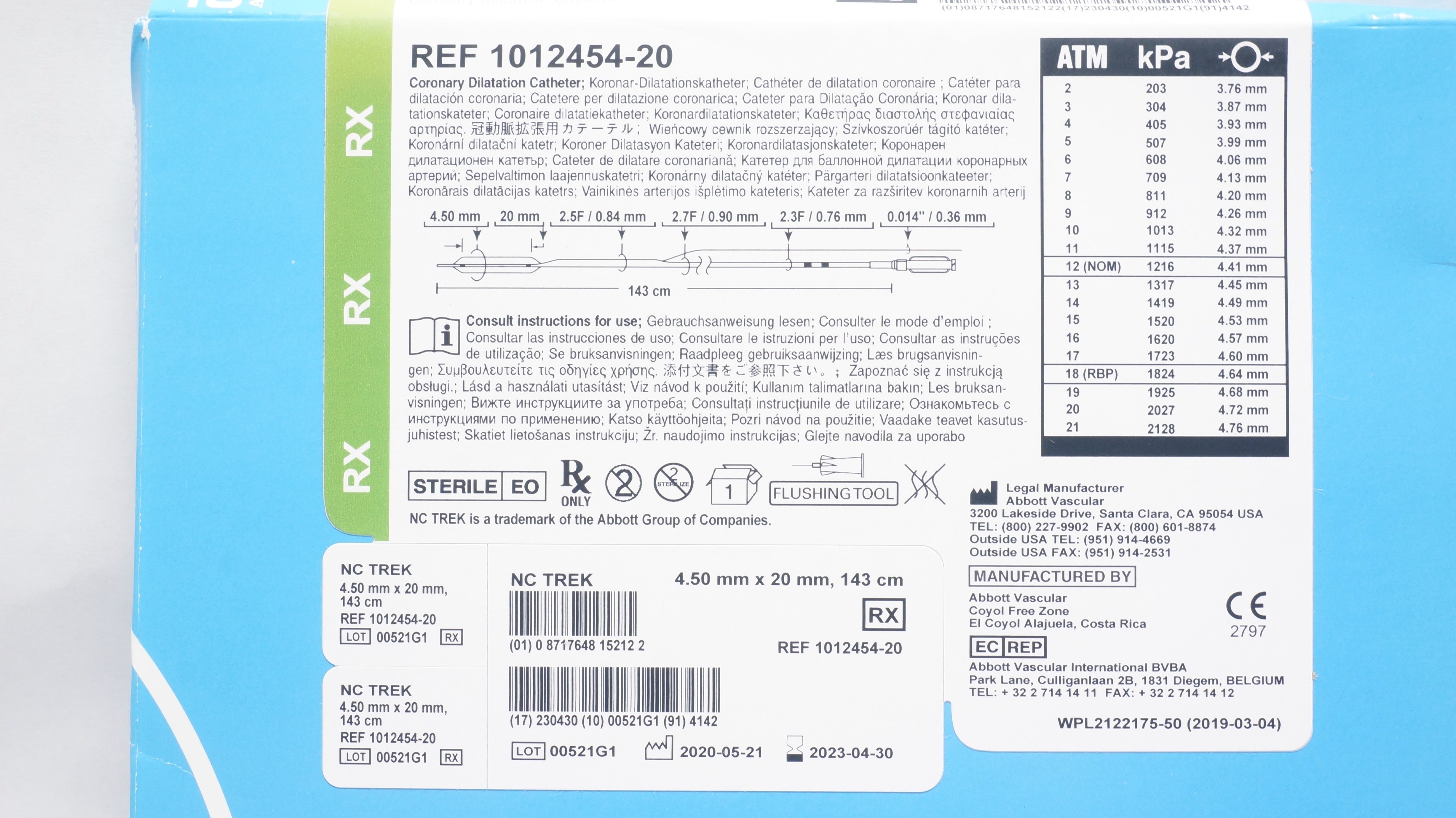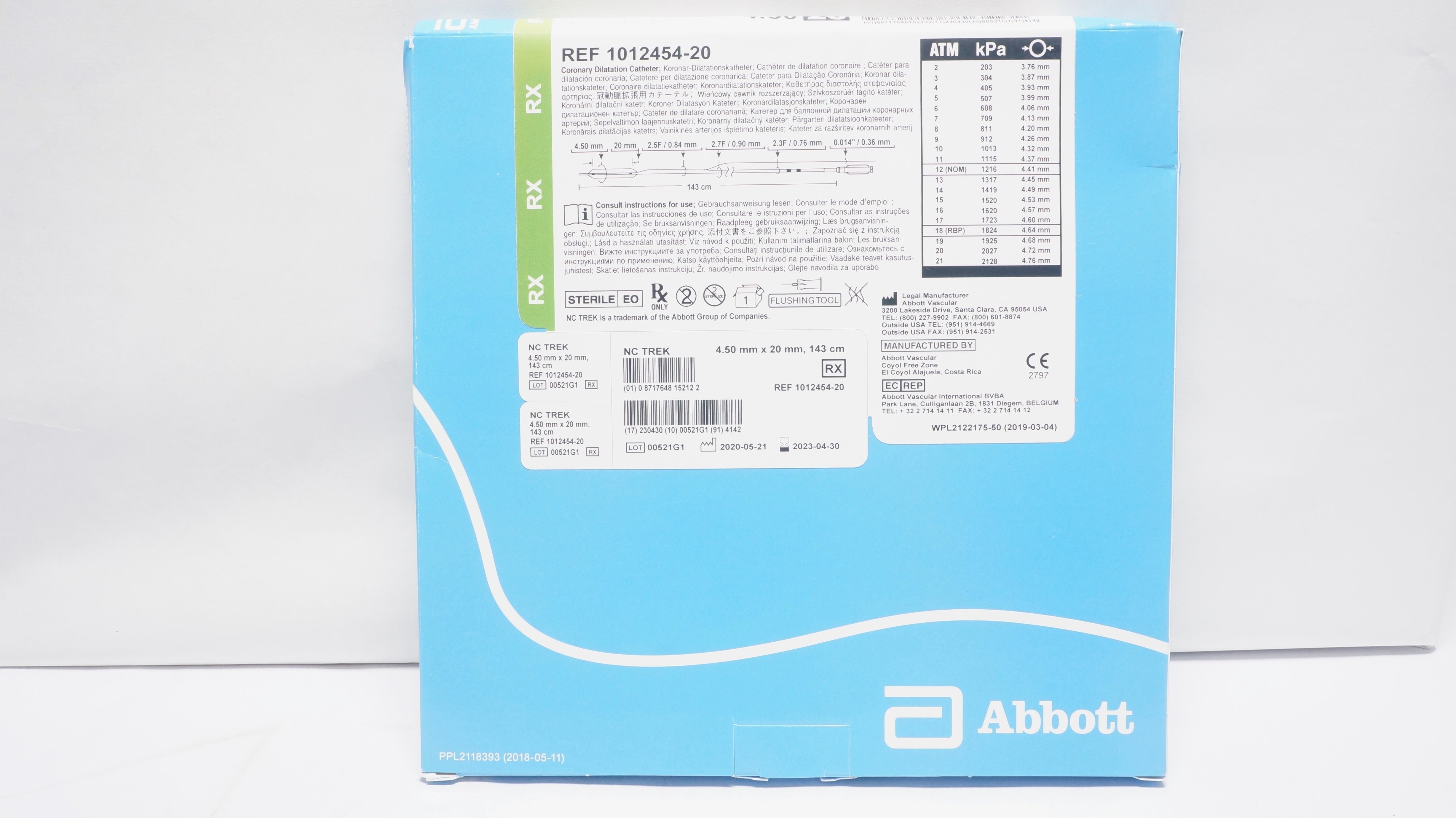 Abbott 1012454-20 NC Treck Coronary Dilatation Cath. 4.50mm xx 20mm,143cm (x)