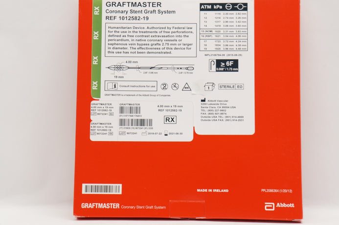 Abbott 1012582-19 Graftmaster Coronary Stent Garft System 6F (x)