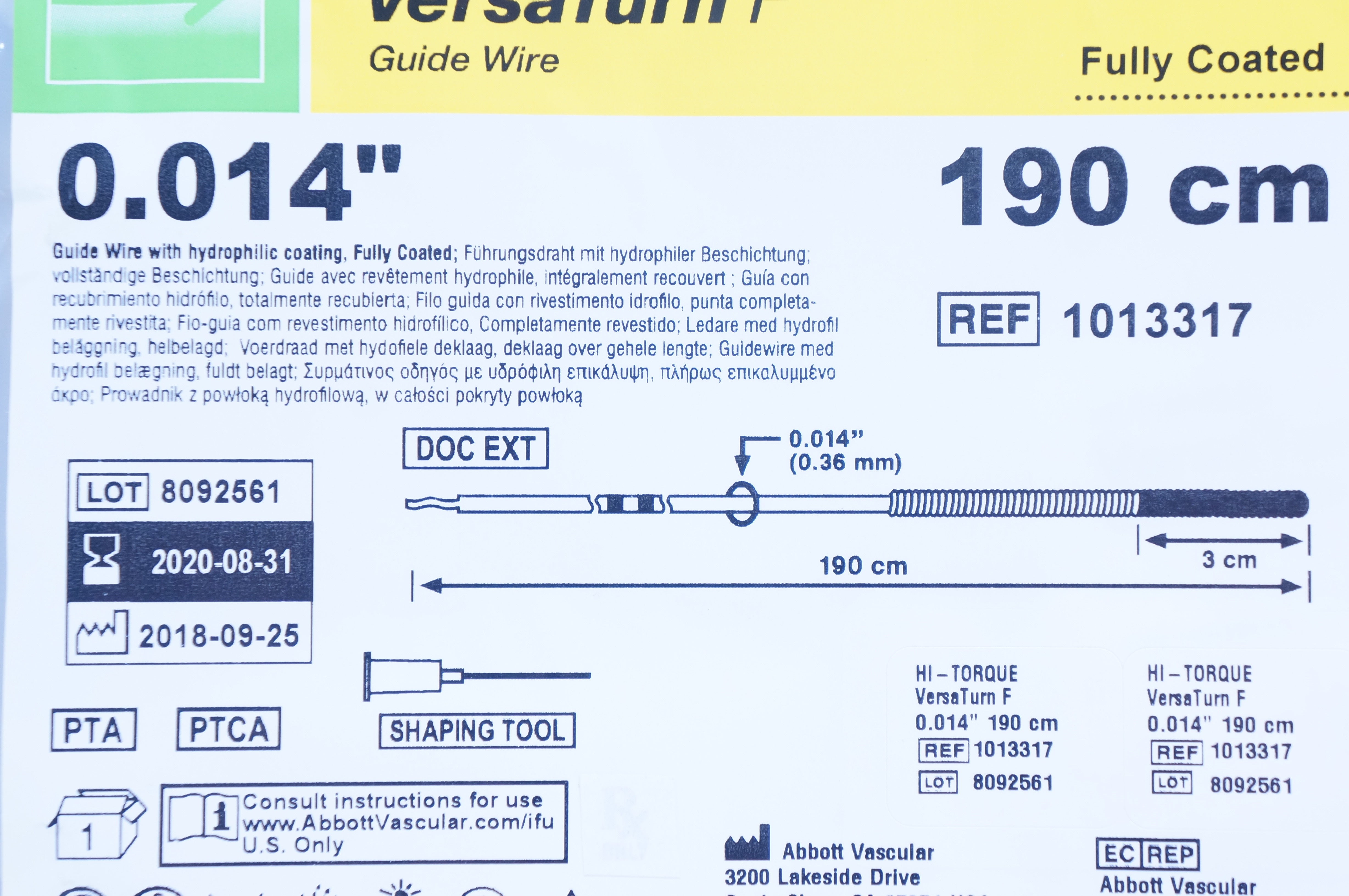 - Abbott 1013317 Hi-Torque VersaTurnF Guaide Wire 0.014in x 190cm (x)