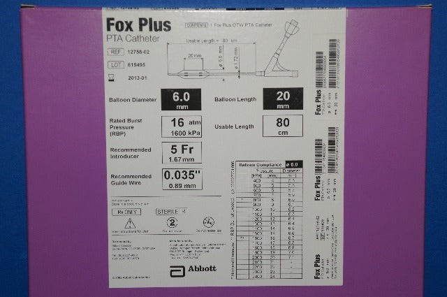 - Abbott 12758-02 Fox Plus PTA Cath. 6.0mm x 20mm (x)