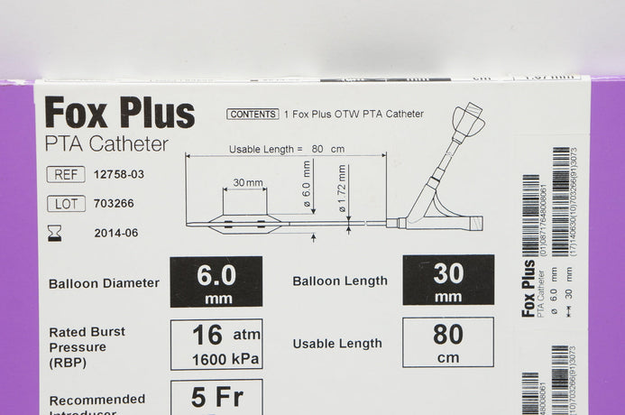 - Abbott 12758-03 Fox Plus OTW PTA Cath. 6mm x 30mm x 80cm, 5Fr. (x)