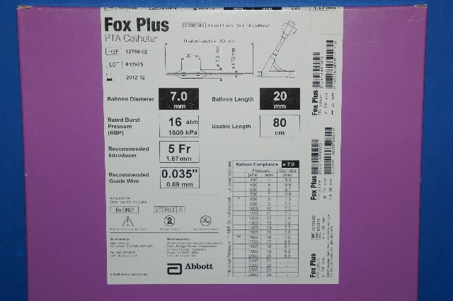 - Abbott 12759-02 Fox Plus PTA Cath. 7.0mm x 20mm (x)