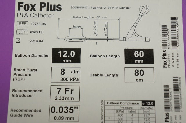 Abbott 12763-06 Fox Plus OTW PTA Cath 12.0mm x 60mm, 7Fr x 0.035 (x)