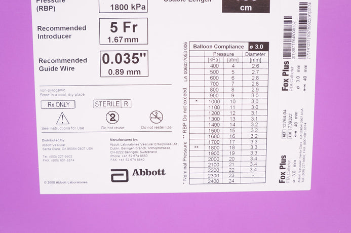 Abbott 12764-04 Fox Plus PTA Cath. 3.0mm x 40mm x 135cm, 5Fr (x)