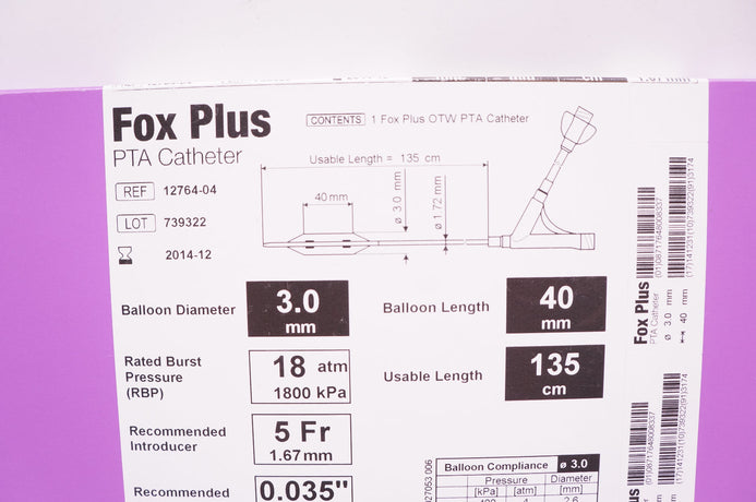 Abbott 12764-04 Fox Plus PTA Cath. 3.0mm x 40mm x 135cm, 5Fr