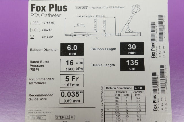 - Abbott 12767-03 Fox Plus OTW PTA Cath 5Fr. x 0.035 (x)