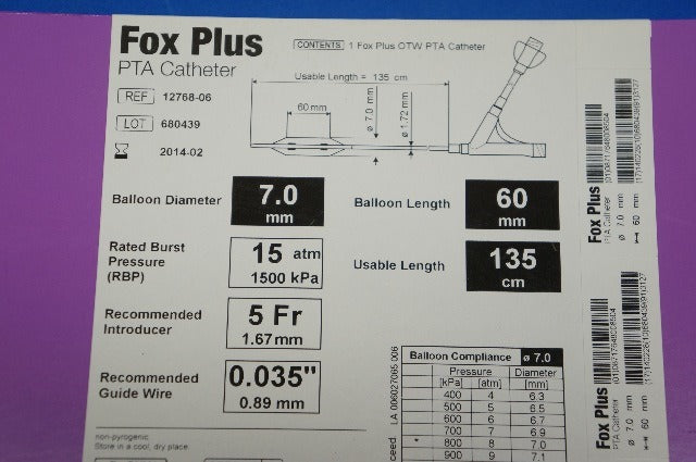 Abbott 12768-06 Fox Plus OTW PTA Cath 7.0mm x 60mm, 5Fr x 0.035 (x)