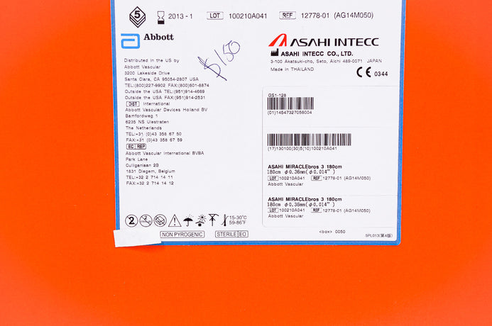 Abbott 12778-01 ASAHI PTCA Guide Wire MIRACLEbros 3 180cm (x) - Box of 5