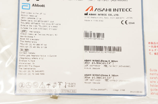 - Abbott 12779-01 MIRACLEbros 6 Guide Wire, 0.014inch x 180cm (x)