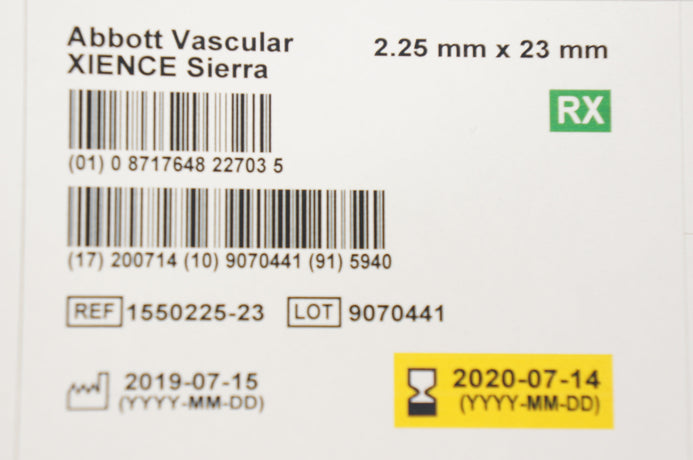 - Abbott 1550225-23 Vascular Xience Sierra 2.25mm x 23mm, RX (x)
