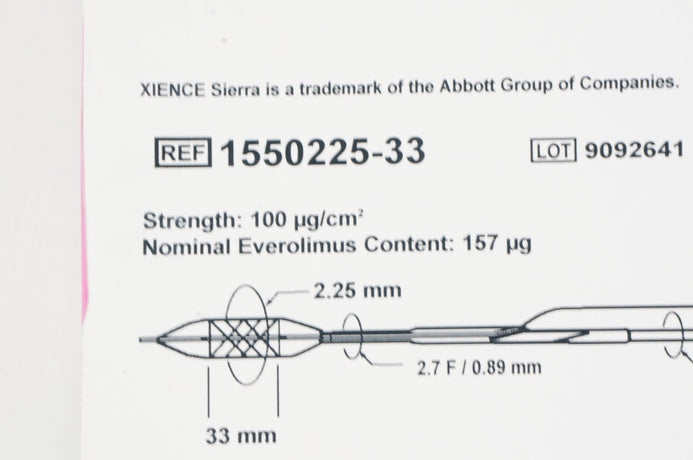 Abbott 1550225-33 Xience Sierra Everolimus Eluting Coronary Stent System 2.25mm x 33mm