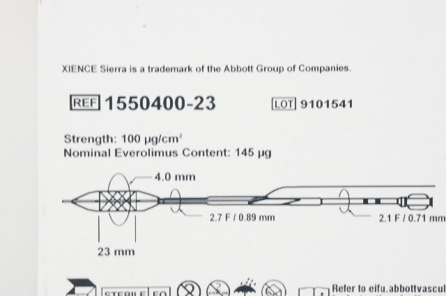 Abbott 1550400-23 Xience Sierra Everolimus Eluting Coronary Stent System 4.0mm x 23mm