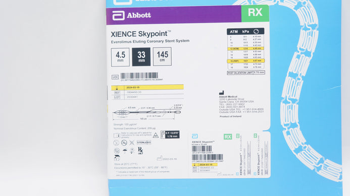 Abbott 1804450-33 Xience Skypoint Coronary Stnt System 145cm x 4.5mm x 33mm (x)