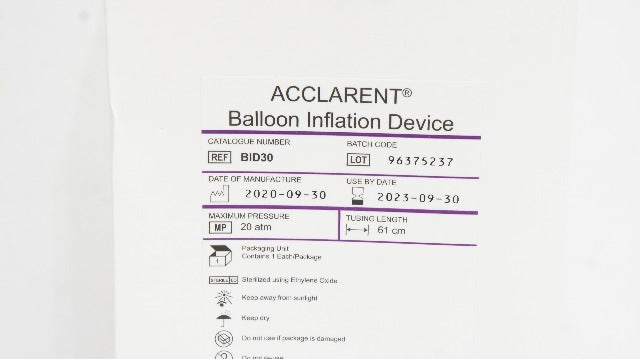 - Acclarent BID30 Balloon Inflation Device 61cm, 20atm (x)