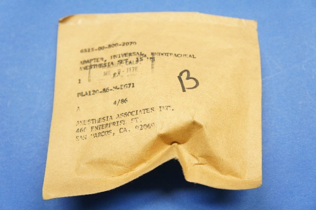 Special features: 15 mm female taper; supplements connectors and adapters of anesthesia set,6515-00-299-8687; for use with various size adapters and connectors,anesthia apparatus,6515-00-782-3924,and resuscitator-aspirator,former item 6515-00-890-1818