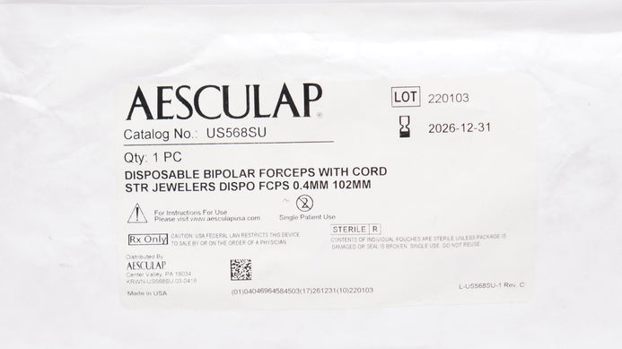 Aesculap US568SU Disposable Bipolar Forceps W/Jewelers Dispo FCPS 0.4mm 102mm