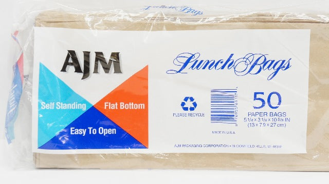AJM Self Standing Flat Bottom Brown Paper Lunch Bags - Pack of 50