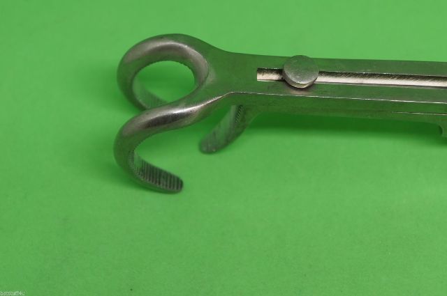 Alan Scott Bone and Plate Holding Clamp 8 1/2 inch Overall length: 6.750 inches nominal Design designation: lowman modified Jaw type: curved Jaw quantity: 3 Jaw grasping method: serrated Material and location: steel, corrosion resisting overall Jaw grasping surface length: 1.156 inches Compression retaining method: setscrew-locking