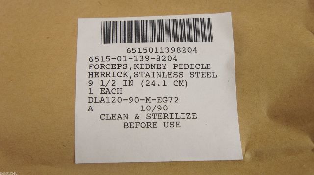 - Alan Scott Herrick Kidney Pedicle Forceps 9.5in