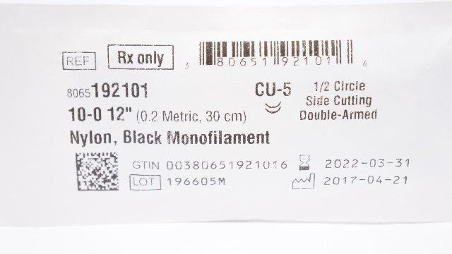Alcon 192101 10-0 NYLON, CU-5, 1/2c Side Cutting, Double-Armed, 12inch (x)
