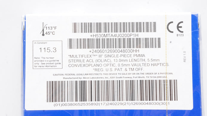 Alcon Laboratories MTA4U0 Intraocular Lens 20.0 D x 5.5mm x 13.0mm (x)