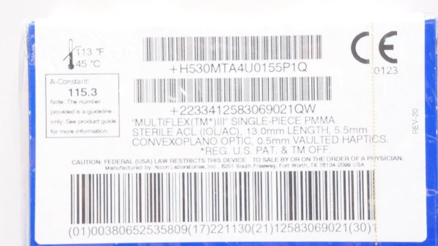 Alcon MTA4UO UV Intraocular Lens 15.5D, 5.5mm x 13.0mm (x)