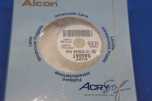 - Alcon SA60AT Acrysof Natural Single-Piece, 13mm Length, 6mm Biconvex Optic 12.0D