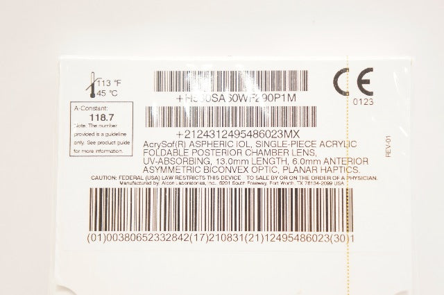 Alcon SA60WF ACRYSof Aspheric Intraocular Lens 29.0D Length13.0mm Optic 6.0mm(x)