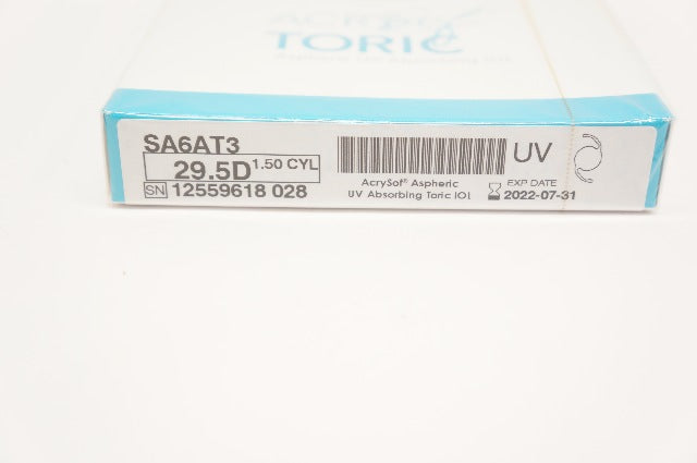 Alcon SA6AT3 ACRYSof Aspheric UV Absorbing Toric IOL 29.5D 1.50D CYL Length 13.0mm, Optic 6.0mm
