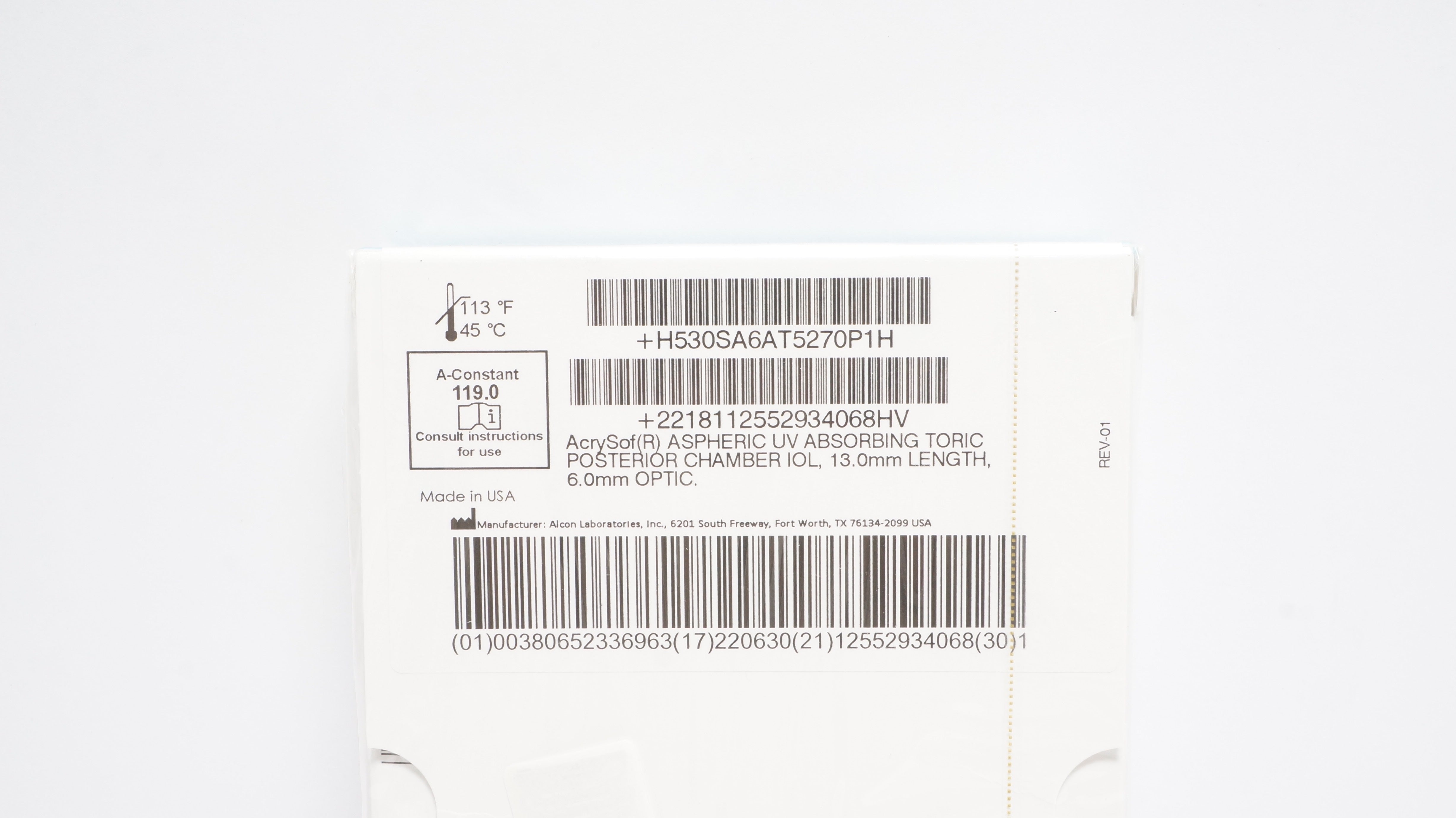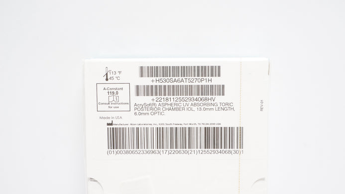Alcon SA6AT5 ACRYSof Toric Aspheric Toric IOL 27.0D Length 13mm, Optic 6.0mm (x)