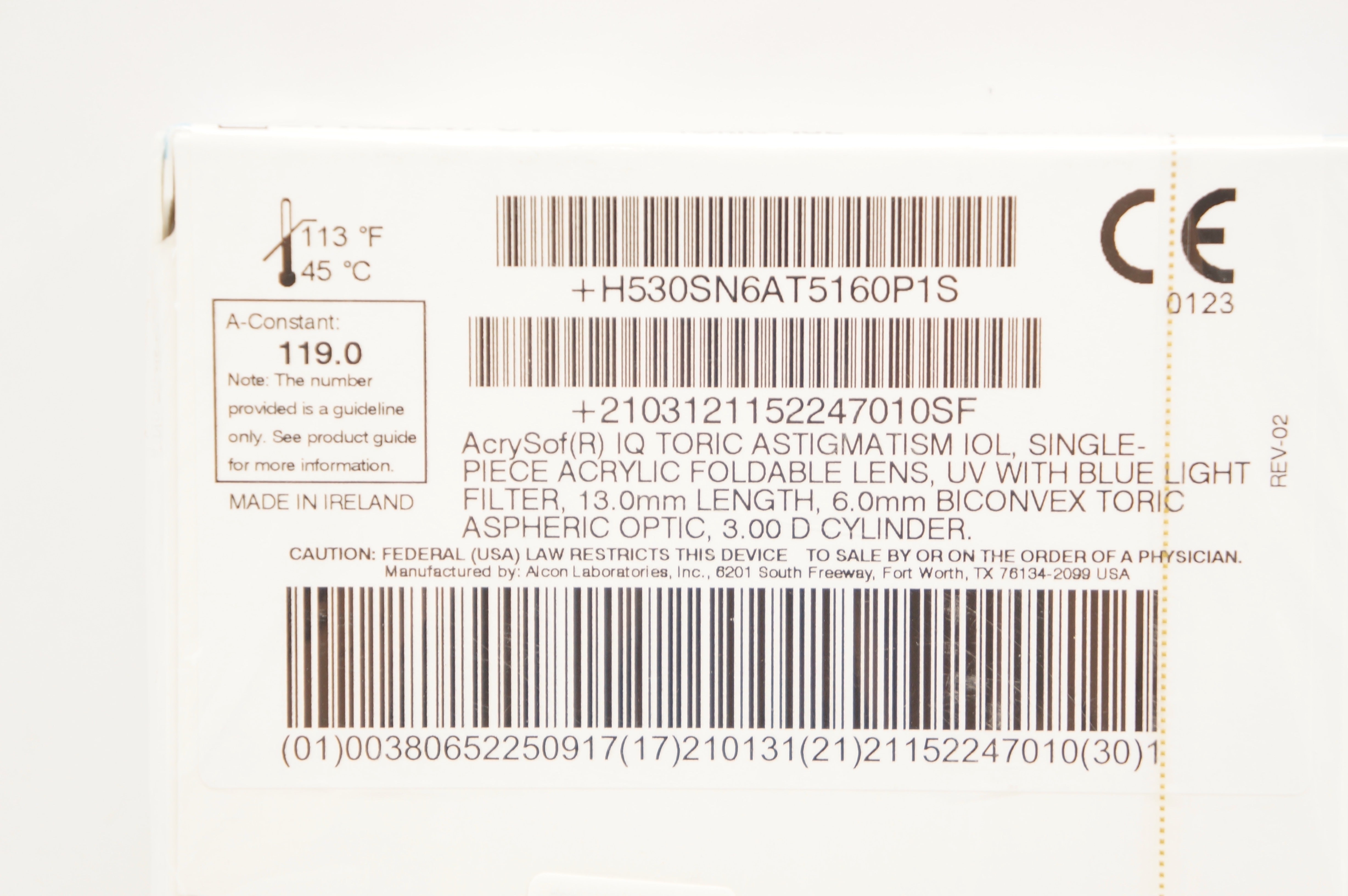 Alcon SN6AT5 AcrySof IQ Toric Astigmatism IOL 16.0D 3.00D CYL 13.0mm x 6.0mm(x)