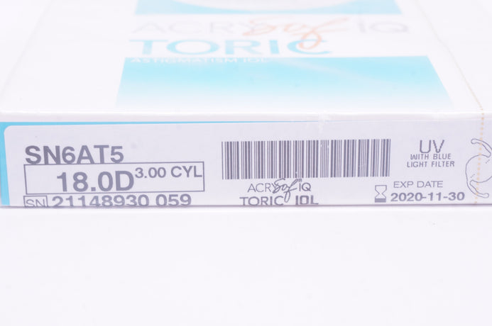 Alcon SN6AT5 AcrySof IQ Toric Astigmatism IOL 18.0D 3.00D CYL 13.0 x 6.0mm