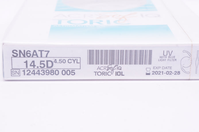 - Alcon SN6AT7 AcrySof IQ Toric Astigmatism IOL 14.5D 4.50 D CYL 13.0 x 6.0 mm (x)