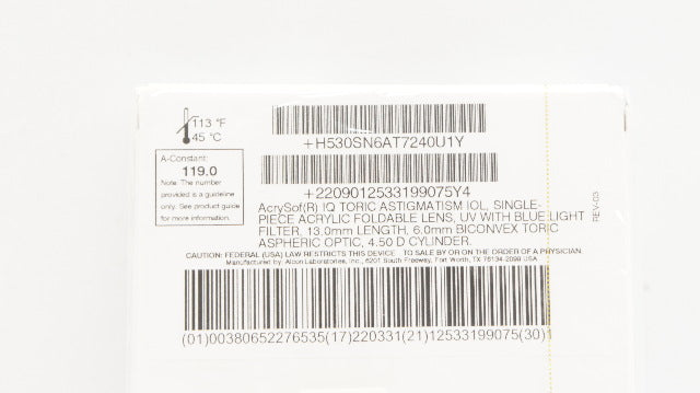 - Alcon SN6AT7 AcrySof IQ Toric Astigmatism IOL 24.0D 4.50D CYL (x)