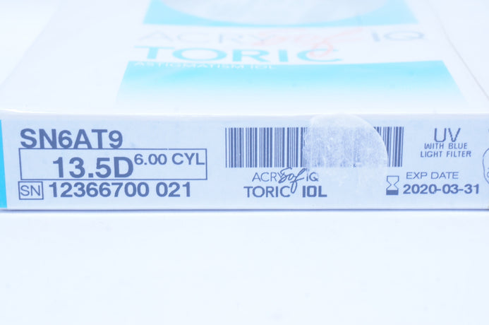 - Alcon SN6AT9 ACRYSof IQ Toric Astigmatism IOL 13.5D, 6.00 CYL (x)