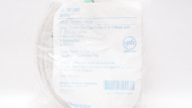 - Allegiance 001203 Airlife Adult Oxygen Mask,Vinyl 3 in 1 W/7Ft Tubing
