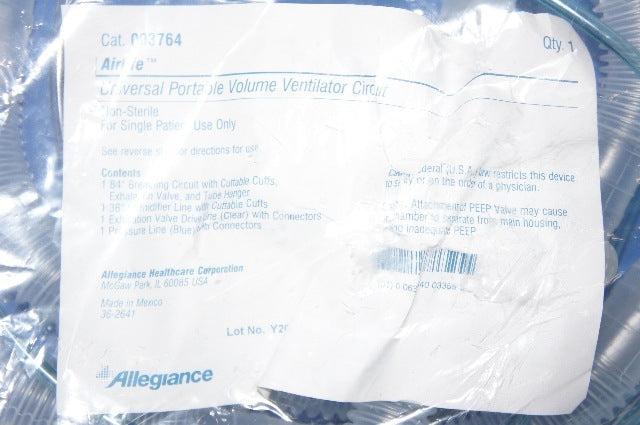 - Allegiance 003764 Airlife Universal Portable Volume Ventilator Circuit ~ Box of 15