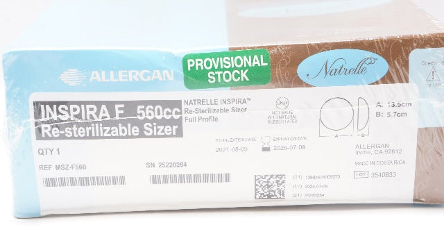 - Allergan MSZ-F560 NATRELLE Inspira F 560cc Re-Sterilizable Sizer 13.5 x 5.7cm
