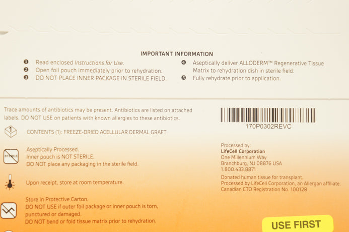 Allergon 102010 AlloDerm Regenerative Tissue Matrix 2x4cm .33 -.76inch (x)