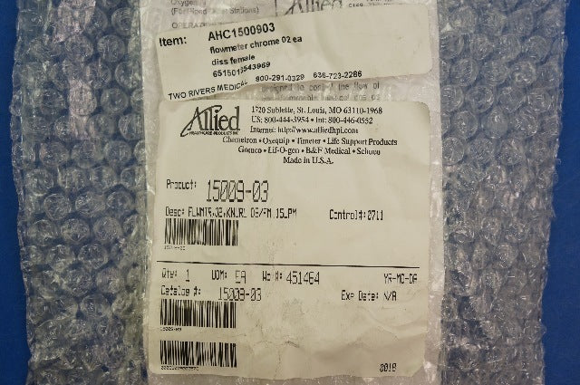 - Allied 15009-03 Healthcare Single Oxygen Flowmeter DISS Female Hex 15L/min
