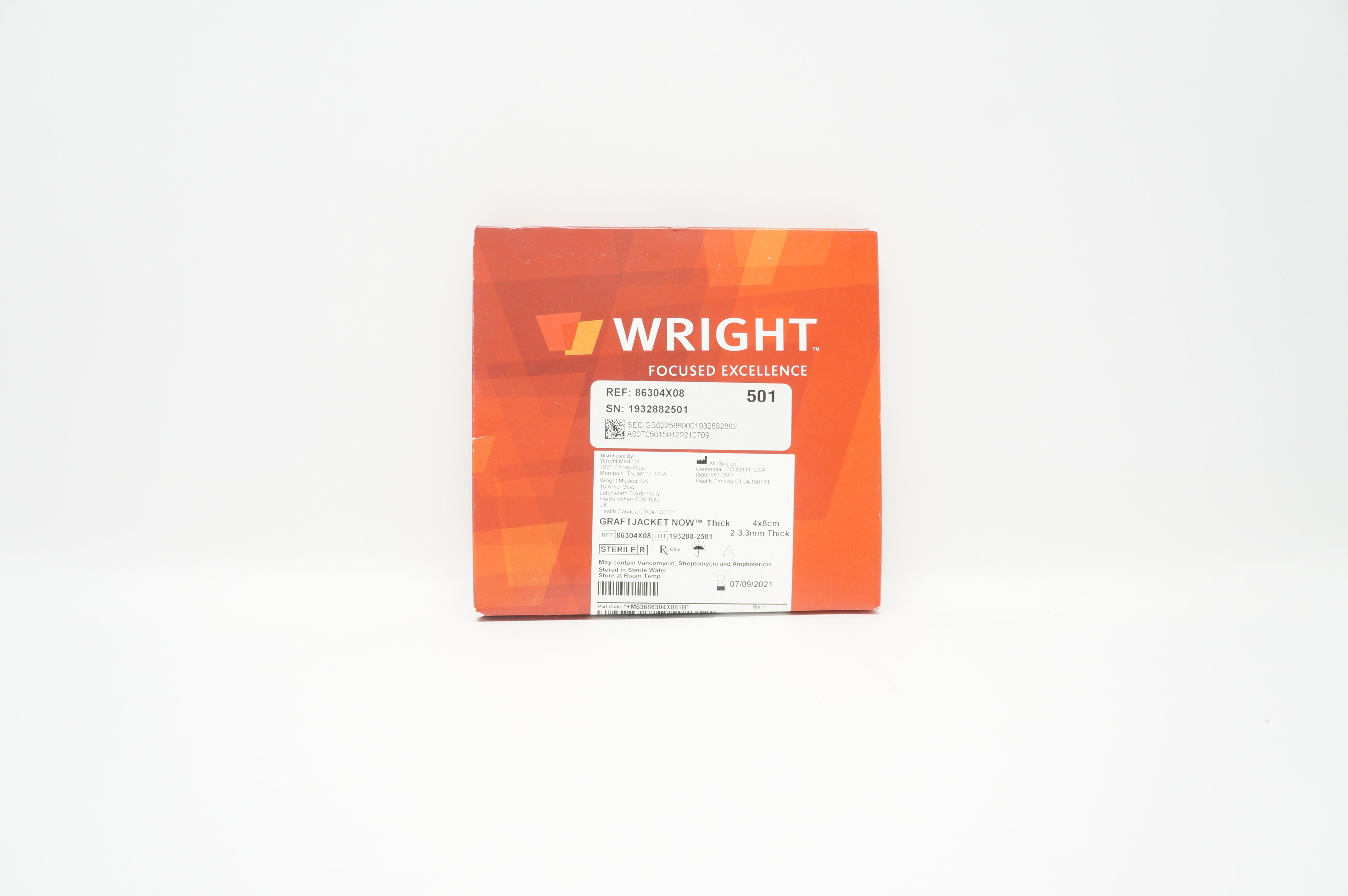 AlloSource 86304X08 Wright GraftJacket Now Thick 4x8cm (x)