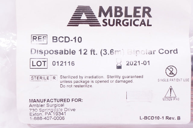 - Ambler Surgical BCD-10 Disposable 12 ft Bipolar Cord (x)