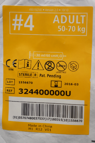 Ambu 324400000U AuraStraight Single Use Laryngoscope Mask - Sterile, #4 Adult 50-70 kg