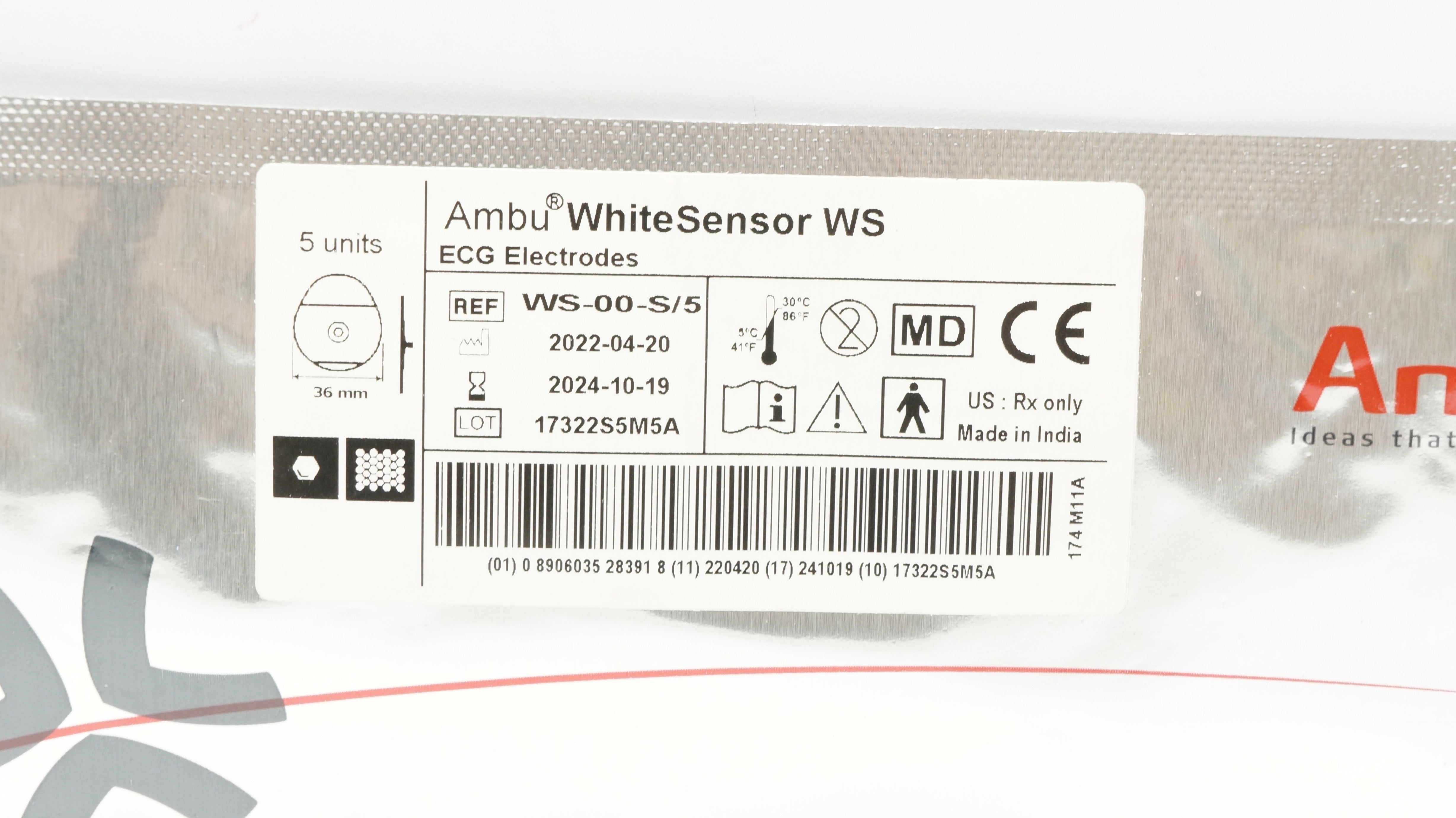 - Ambu WS-00-S/5 WhiteSensor WS ECG Electrodes 36mm - Pack of 5 (x)