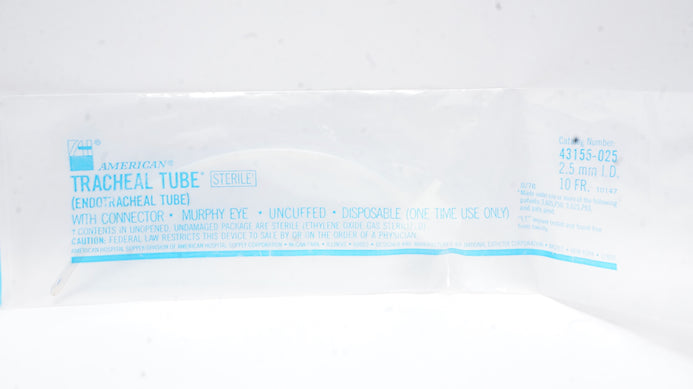 American 43155-025 Tracheal/Endotracheal Tube 2.5mm x 10Fr