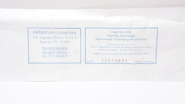 American Catheter 9100 Laparoscopic Cholangiogram Cath 5mm Dia, 23cm Length