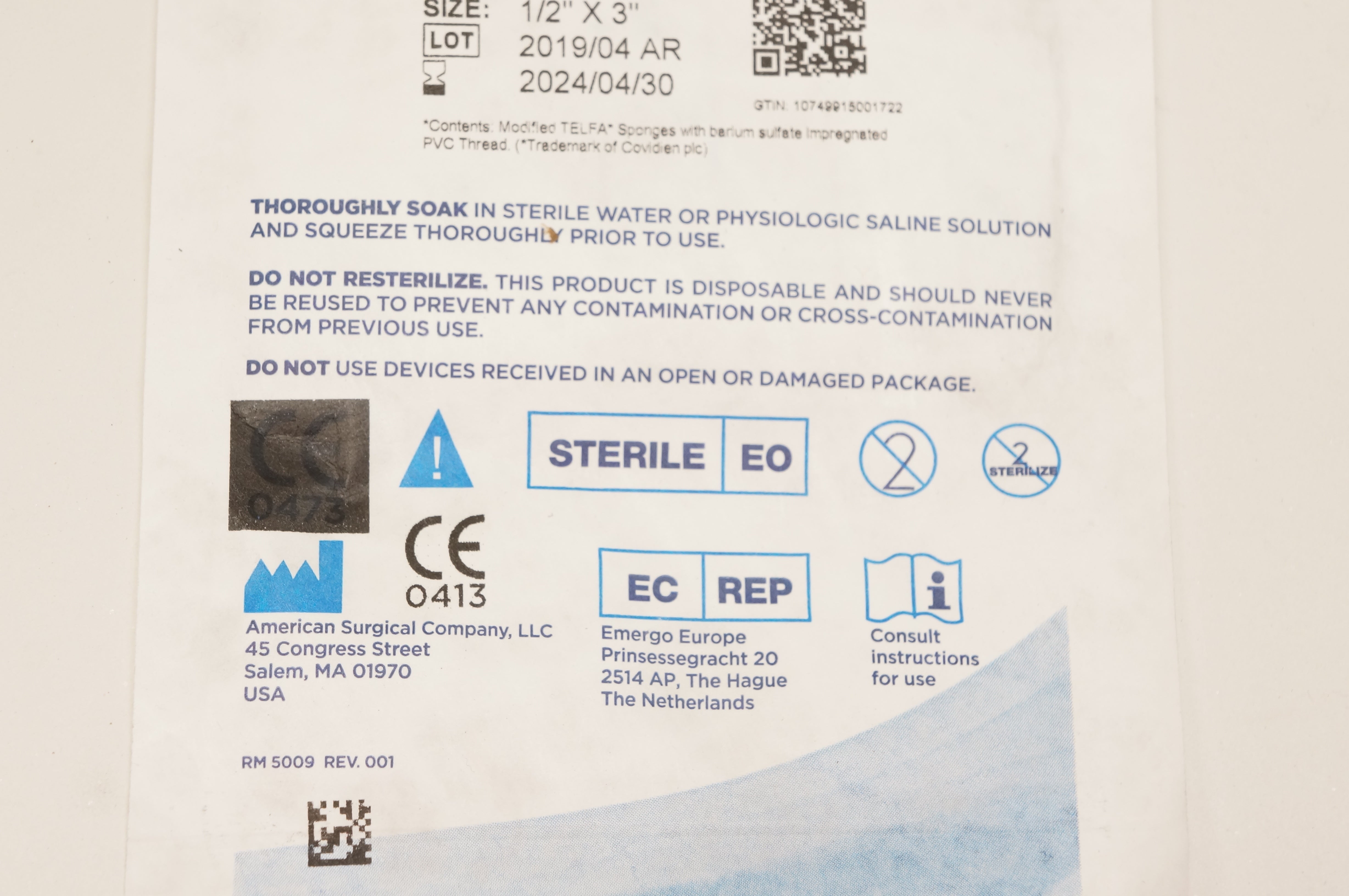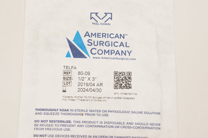 American Surgical 80-09 Telfa 1/2inch x 3inch