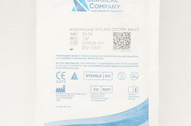 American Surgical Company 30-02 Radiopaque Strung Cotton Balls 1/2 inch (x)